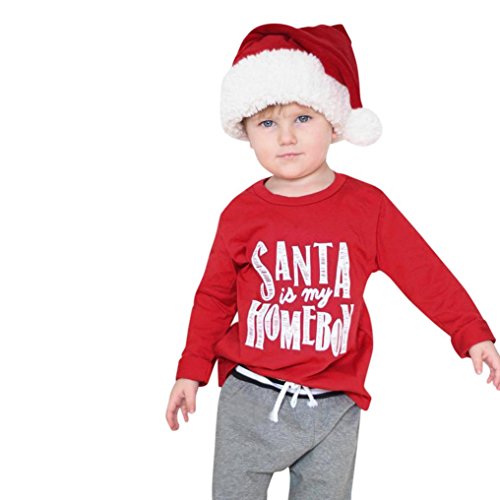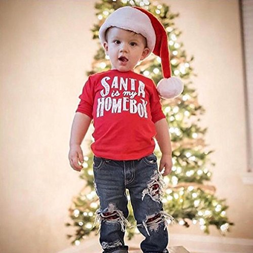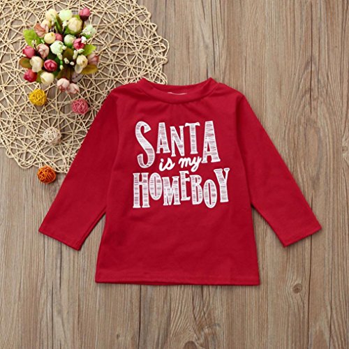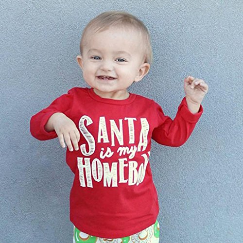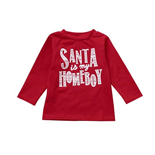 歌を愛する クリスマス サンタベイビーキッズボーイズガールズレタープリントTシャツトップス服装 (90CM)
