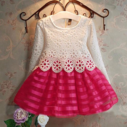 歌を愛する 可愛い 女の子の服 子供服 ホットピンク、レッド2つの色を選択する プリンセスドレス女子 ロン グスリーブ プリンセスドレス 中空 フラワーガールドレス 100CM/110CM/120CM/130CM/140CM(2歳〜7歳) (120CM(4歳〜5歳), ホットピンク)