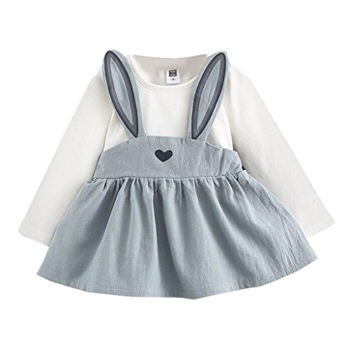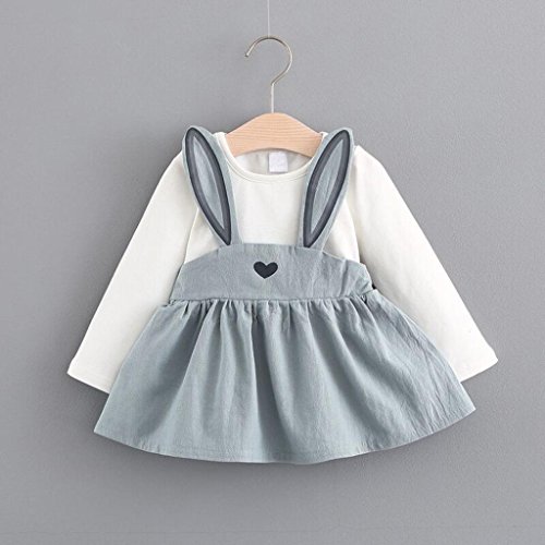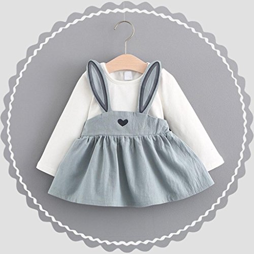 ガールズドレス 歌を愛する かわいい ガールズ 女の子 子供服 新生児 ドレス レースのプリンセスドレス かわいいウサギの耳 ストラップ ワンピース クリスマスクリスマス 生産 祝い 贈り物 3色 (60CM(3~8ヶ月), ブール)