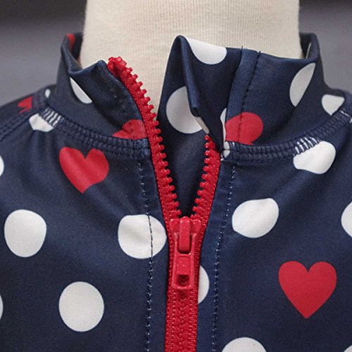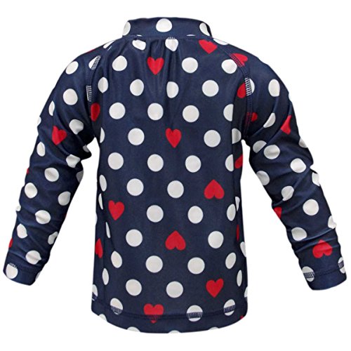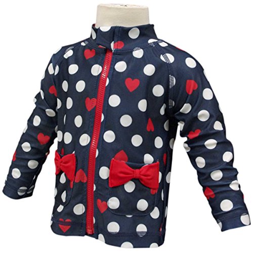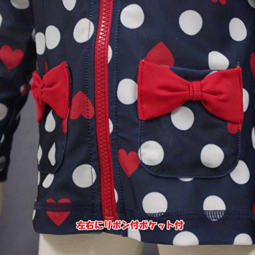 ガールズベビー水着[Lemon Syrup]ベビー長袖ラッシュガードUV|ドット|ハート柄|フルジップアップ|女の子|女児 90cm ネイビー
