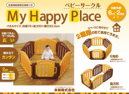 ●【商品説明】●「ベビーサークル My Happy Place」は、6枚の大きめパネルのロックパーツを差し込むだけで組み立てられるベビーサークルです。●お部屋のスペースに合わせて6角形と長方形の2種類の形でお使いいただけます。●2段階ドアロック機能付き。●対象年齢6カ月-2才頃。●【原産国】●台湾●【材質】●ポリプロピレン●【使用上の注意】●本製品は必ず保護者の目のとどく所で使用して下さい。●設置後もお子様の安全には十分ご注意下さい。●対象年齢内のお子様でも成長の度合いにより危険が生じる場合がありますので、お子様がパネルを登れるようになったら、ただちに使用を中止して下さい。●ご使用になる前に全てのパネルがロックパーツでしっかりと接合されているか(ガタツキがないか)、必ず確認をして下さい。●パネルの接合が不十分な場合、事故やケガの原因となります。●本製品に劣化や破損、変形、部品不足などの異常が生じた場合は、ただちに使用を中止して下さい。●次のような危険な場所での使用はおやめ下さい。●重大な事故の原因となります。●・階段の降り口などの段差や傾斜のある場所...