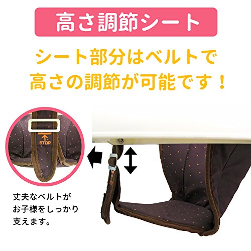 約2.5㎏と軽量です。 約10cmに折りたたみできます。 シート部分もベルトで高さ調整可能! フチ付きテーブルなので、食事にも使えます! 8個の消音キャスター付き!