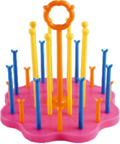 「哺乳瓶ホルダー(ピンク)」は、24本のカラフルな3種類の高さのスティックで、さまざまな形状のボトルに対応する哺乳瓶ホルダーです。スティックを外すとコンパクトに収納できます。 使用方法 ポールを台座の下から通し、用途に応じてスティックを台座の穴に差し込んでご使用下さい。 使用上の注意 ●開封後の梱包材は、赤ちゃんが口に入れる可能性がありますのですぐに捨てて下さい。