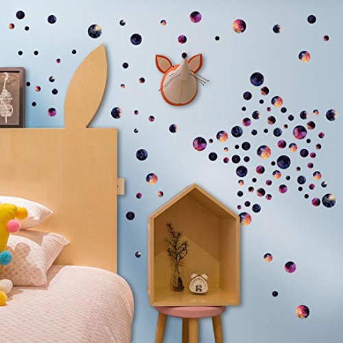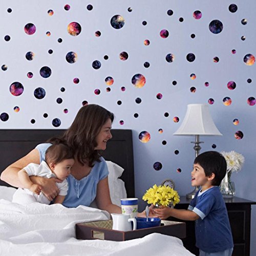 星空色の丸 ウォールステッカー 壁貼り 無毒 環境保護 防水壁紙シール 壁、ガラスドアドア、窓ガラス、キッチン、バスルーム、ランプ、家電、空調、車体、子供の部屋、DIY、ベッドルームや天井などの場合 ウォールシール/ウォールペーパー/シール/壁のクロース (星空色の丸, 星空色)