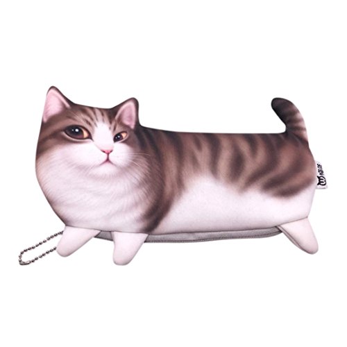 かわいい 3D猫 001 三用機能 ペンケース ウォレット 化粧用バッグ 軽量 財布/バッグ ペン、鉛筆、消しゴム、小銭、硬貨、鍵などに適用 (3D猫 001, 写真のように)