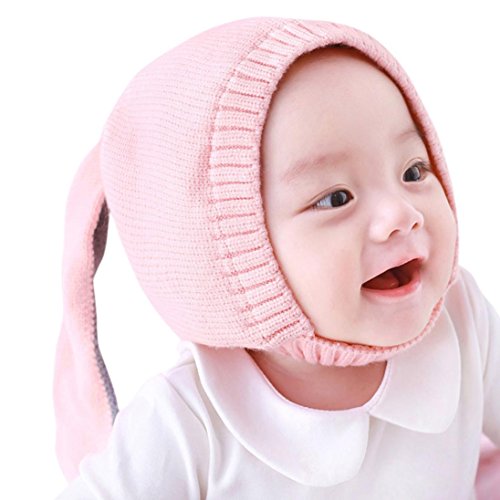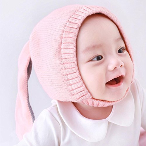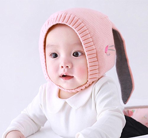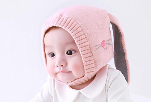 男女兼用 5色 かわいい ウサギ耳 ベビー ニット帽 女の子 春/秋/冬 防風・防寒・保温 ベビー 帽子 男の子 ベビーハット/帽子/キャップ/ハット 子供用/幼児/キッズ/新生児用 お宮参り/記念撮影 /誕生日/ バースデー/ セレモニー /結婚式/プレゼント/出産祝い 20cm ×18cm (6ヶ月-18ヶ月) (6ヶ月-18ヶ月, 桜色)