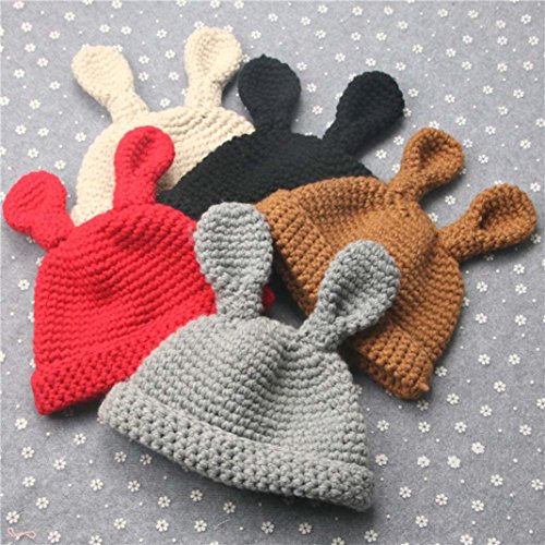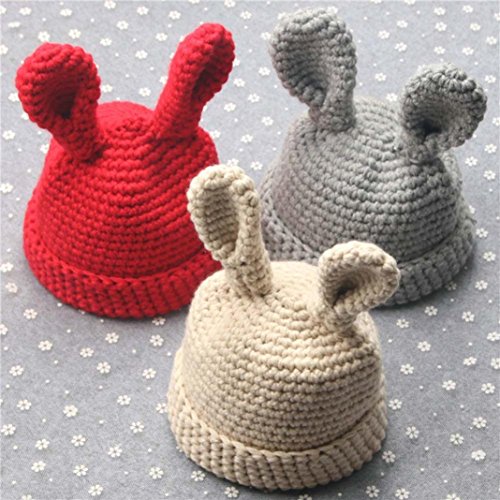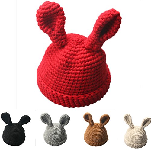 男女 5色 かわいい 兎の耳 ベビー 帽子 女の子 春/秋/冬 防風・防寒・保温 ベビー ニット帽 男の子 ベビー ハット/帽子/キャップ/ハット 子供用/幼児/キッズ/新生児用 お宮参り/記念撮影 /誕生日/ バースデー/ セレモニー /結婚式/プレゼント/出産祝い3-36ヶ月(ベージュ+黒+コーヒー+灰色+赤) (3-36ヶ月, 赤色)