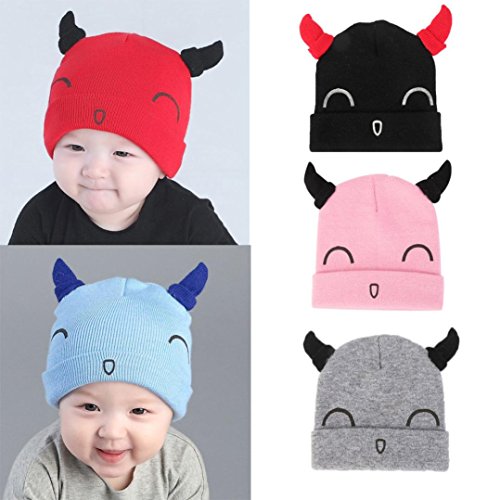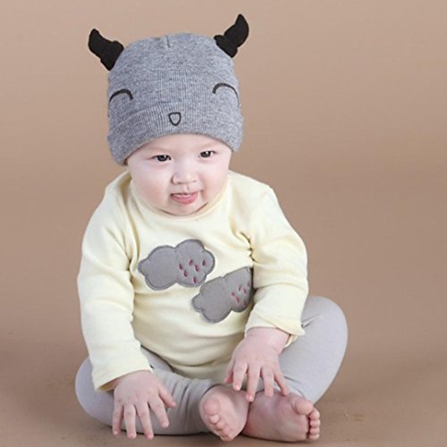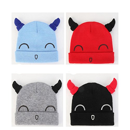 男女 5色 牛角設計 ベビー ニット帽 女の子 春/秋/冬 防風・防寒・保温 ベビー 帽子 男の子 ベビー ハット/帽子/キャップ/ハット 子供用/幼児/キッズ/新生児用 お宮参り/記念撮影 /誕生日/ バースデー/ セレモニー /結婚式/プレゼント/出産祝い 46-48cm(0-12ヶ月)(黒+青+灰+桜+赤) (0-12ヶ月, 灰色)