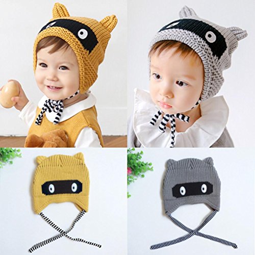 男女 2色 漫画 ベビー ニット帽 女の子 春/秋/冬 防風・防寒・保温 ベビー 帽子 男の子 ベビー ハット/帽子/キャップ/ハット 子供用/幼児/キッズ/新生児用 お宮参り/記念撮影 /誕生日/ バースデー/ セレモニー /結婚式/プレゼント/出産祝い 約42〜50cm(8ヶ月- 2歳)( 灰+黄) (8ヶ月- 2歳, 灰色)