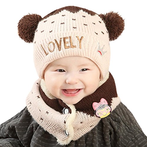男女 Lovely 2点セット(帽子+マフラー)4色 かわいい ベビー 帽子 女の子 春/秋/冬 防風・防寒・保温 ベビー ニット帽 男の子 ベビー ハット/帽子/キャップ/ハット 子供用/幼児/キッズ/新生児用 お宮参り/記念撮影 /誕生日/ バースデー/ セレモニー /結婚式/プレゼント/出産祝い45-50cm 1〜4歳(ベージュ+青色+赤色+黄色) (1〜4歳, ベージュ)