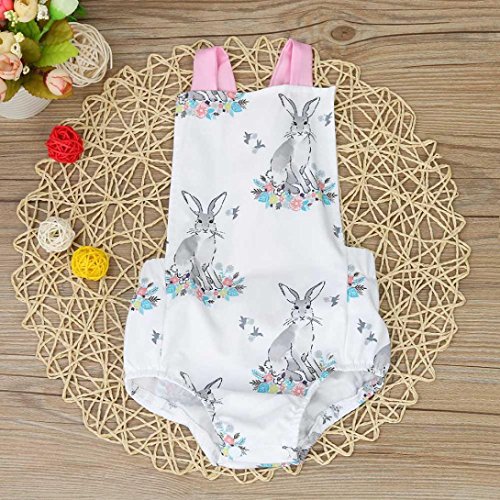 かわいい 兎 ベビー服 綿混紡 赤ちゃん服 女の子 ロンパース 新生児 4サイズ 70-80-90-10(0月-18月) (70, ホワイト)