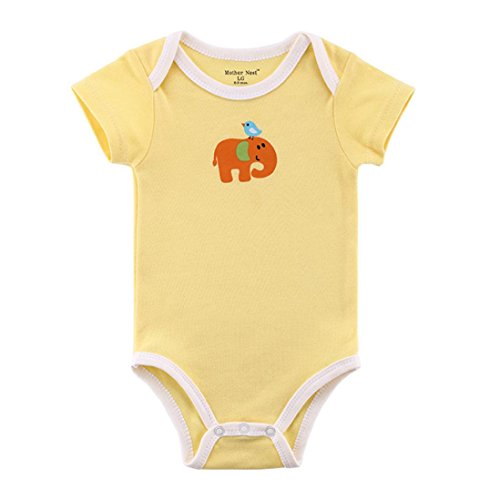 象と鳥 男女兼用 綿生地 かわいい ベビー服 おしゃれ 赤ちゃん服 女の子 4サイズ 新生児 子供服 男の子 0-12月 (12M, 黄色)