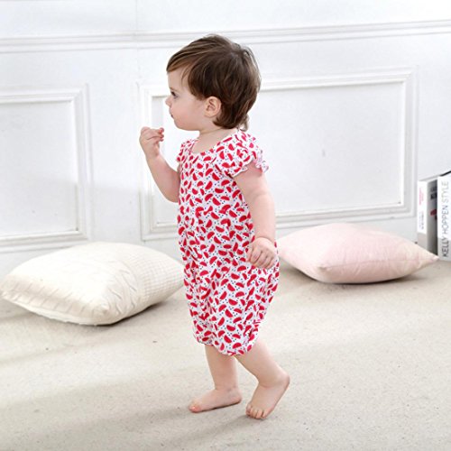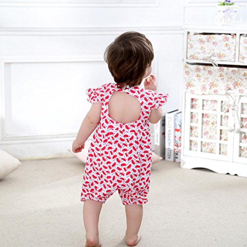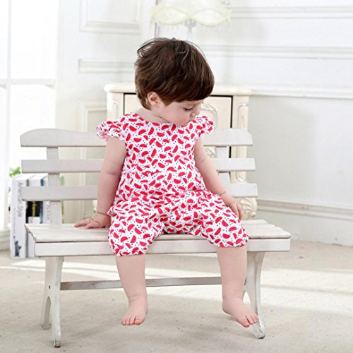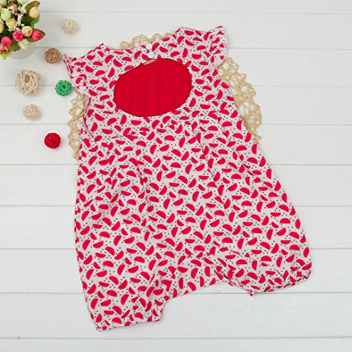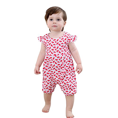 スイカ模様 可愛い ベビー 幼児 赤ちゃん 新生児 子供服 ロンパース カバーオール 出産祝い/プレゼント 70cm-80cm-90cm-100cm(0歳-2歳) (90/12-18ヶ月, レッド)