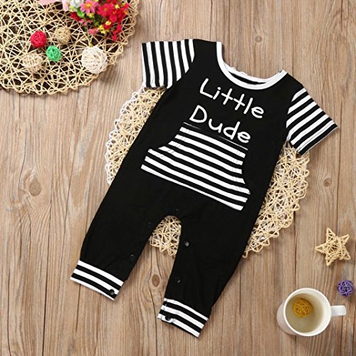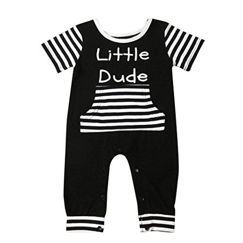 litte dude文字 ベビー服 男の子 幼児 赤ちゃん 新生児 子供服 男の子 ロンパース カバーオール 出産祝い/プレゼント 70CM/80CM/90CM(0ヶ月-2歳) (90CM/18-24ヶ月, 黒色)