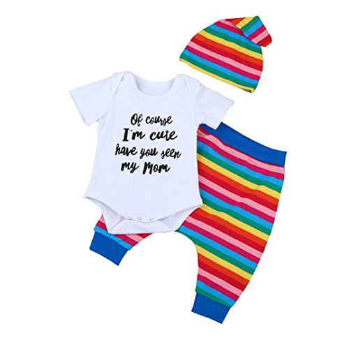 おもしろい 英語文字 3点セット(ロンパース+スカート+帽子) かわいい ベビー服 女の子 赤ちゃん服 幼児 子供服 女の子 半袖 4サイズ 丸首 ロンパース カバーオール 満月/出産祝い/プレゼント 70CM-80CM-90CM-100CM(0ヶ月-24ヶ月) (70CM/0-6ヶ月, 写真のように)