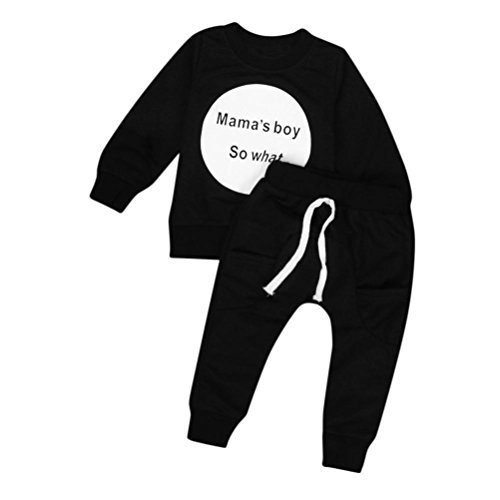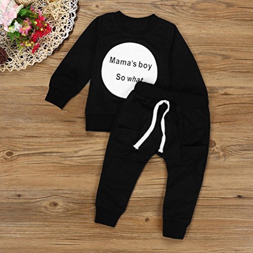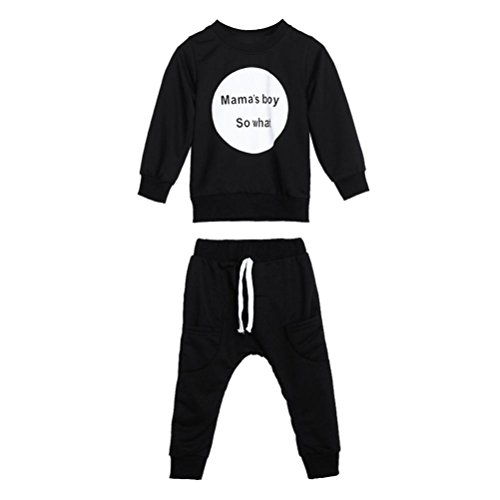 Mama's Boy So What 2点セット(上着+パンツ) かっこいい ベビー服 男の子 赤ちゃん服 幼児 子供服 男の子 長袖 5サイズ キッズ ロンパース カバーオール80CM-90CM-100CM-110CM-120CM(6ヶ月-48ヶ月) (110CM/24-36ヶ月, 黒色)