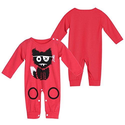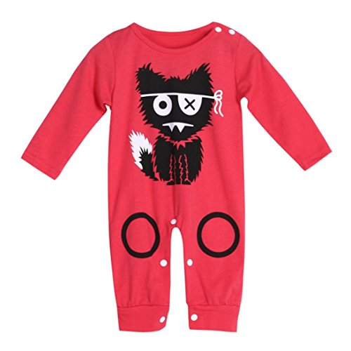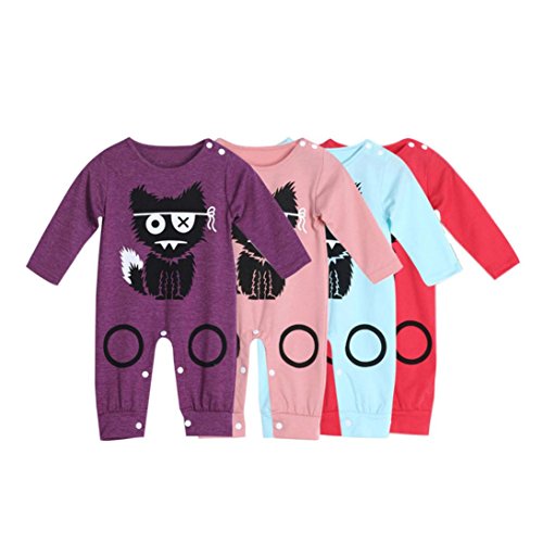 男女兼用 猫 4色 かわいい ベビー服 女の子 赤ちゃん服 幼児 かっこいい 子供服 男の子 長袖 4サイズ キッズ ロンパース カバーオール 満月/出産祝い/プレゼント70CM-80CM-90CM-100CM(0ヶ月-24ヶ月)(赤+青+紫+ピンク) (80CM/6-12ヶ月, 赤)