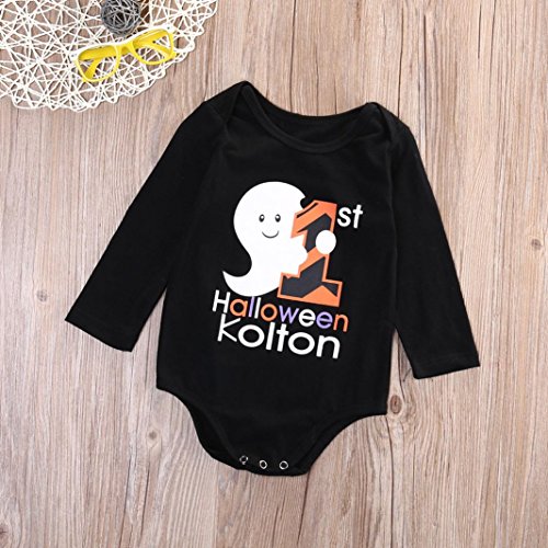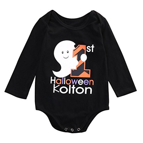 1st Halloween Kolton 男女兼用 かわいい ベビー服 女の子 赤ちゃん服 幼児 子供服 男の子 長袖 4サイズ キッズ服 ロンパース カバーオール 満月/出産祝い/プレゼント70CM-80CM-90CM-100CM(3ヶ月-18ヶ月) (90CM/12ヶ月, 黒色)