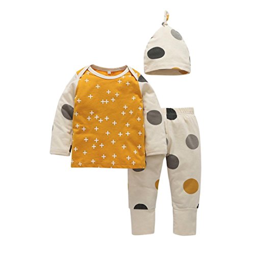 橙色 丸点とプラス 3点セット(上着+パンツ+帽子) 男女兼用 ベビー服 女の子 赤ちゃん服 幼児 子供服 男の子 長袖 丸首 5サイズ キッズ服 ロンパース カバーオール 満月/出産祝い/プレゼント60CM-70CM-80CM-90CM-100CM(0ヶ月-24ヶ月) (70CM/3-6ヶ月, 写真のように)