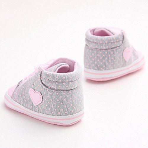 灰色 丸点とハート ベビーシューズ 女の子 ガール キャンバス シューズ スニーカー ベビー 女の子 赤ちゃん 幼児靴 子供靴 3サイズ フラットシューズ/スニーカー キッズ 歩行練習 履き心地いい プレゼント/ ギフト11cm-12cm-13cm(0-18ヶ月) (ラベル-12, 灰色)