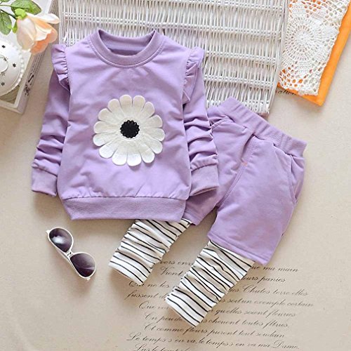 紫色 綺麗な花 2点セット(上着+パンツ) ベビー服 女の子 幼児 子供服 女の子 赤ちゃん服 長袖 4サイズ キッズ服 ロンパース カバーオール 満月/出産祝い/プレゼント 80CM-90CM-100CM-110CM(12ヶ月-36ヶ月) (110CM/36ヶ月, 紫色)