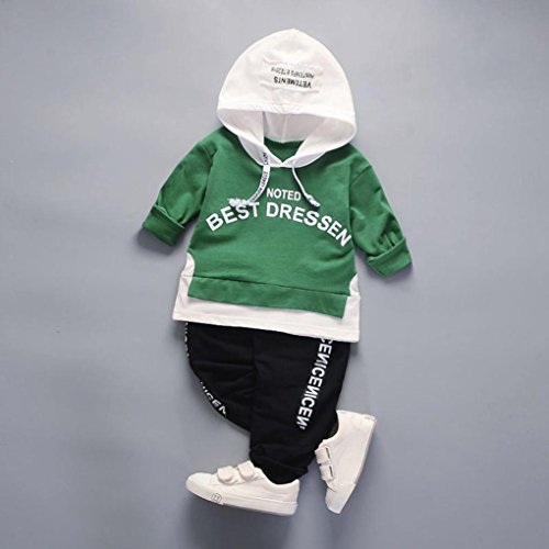 緑+黒 Noted Best Dressen 男女兼用 2点セット(上着+パンツ) ベビー服 女の子 赤ちゃん服 幼児 子供服 男の子 長袖 4サイズ キッズ服 ロンパース カバーオール 満月/出産祝い/プレゼント70CM-80CM-90CM-100CM(0ヶ月-24ヶ月) (70CM/0-6ヶ月, 緑+黒)