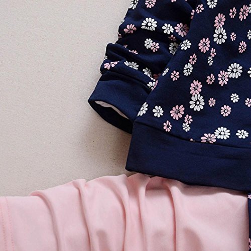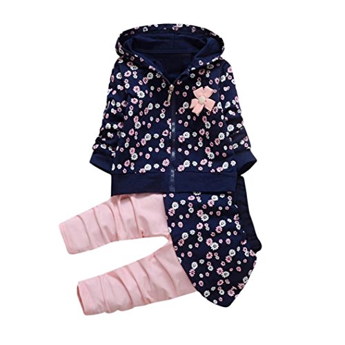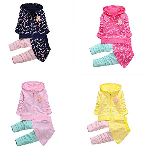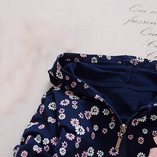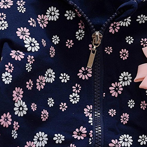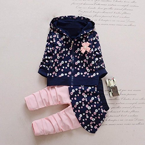 深青+ピンク 花柄 2点セット(上着+ パンツ) ベビー服 女の子 赤ちゃん服 幼児 子供服 女の子 長袖 フード付き 4サイズ キッズ服 ロンパース カバーオール 満月/出産祝い/プレゼント80CM-90CM-100CM-110CM(12ヶ月-36ヶ月) (90CM/18ヶ月, 写真のように)