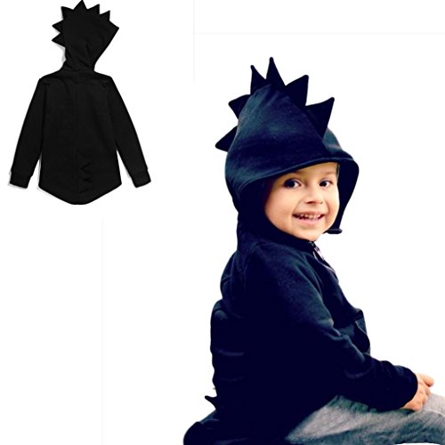 男女兼用 黒恐竜 防寒 暖かい フード付き コート/アウター/上着 ベビー服 男の子 赤ちゃん服 幼児 子供服 女の子 長袖 6サイズ キッズ服 満月/出産祝い/プレゼント90CM-100CM-110CM-120CM-130CM-140CM(12ヶ月-6歳) (140CM/6歳, 黒色)