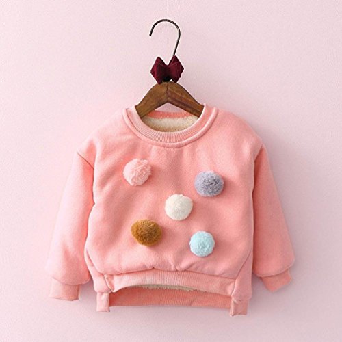 かわいい ファーボール 加绒 防寒 パーカー スエード 子供服 コート/アウター/上着/ジャケット ベビー服 女の子 赤ちゃん服 幼児 子供服 女の子 長袖 5サイズ キッズ服 満月/出産祝い/プレゼント100-110-120-130-140(3歳-7歳)(桜色) (桜色, 130CM/6歳)