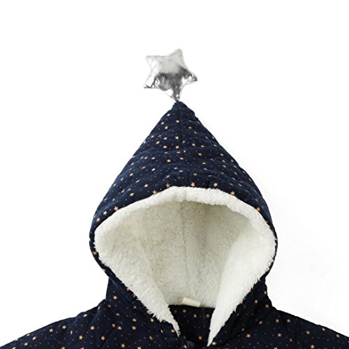 2色 星 プリント 秋冬 防寒 加絨 暖かい フード付き コート/アウター/上着 ベビー服 女の子 赤ちゃん服 幼児 子供服 女の子 長袖 4サイズ キッズ服 満月/出産祝い/プレゼント80CM-90CM-100CM-110CM(紺色+茶色) (80CM/12ヶ月, 紺色)