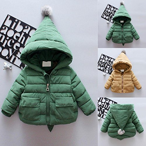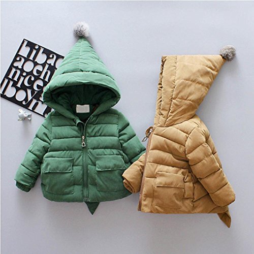 男女 かわいい 2色 秋冬 厚手 防寒 フード付き 長袖 スウェット/コート/アウター/上着 ベビー服 女の子 赤ちゃん服 幼児 子供服 男の子 5サイズ キッズ服 ロンパース カバーオール プレゼント80CM-90CM-100CM-110CM-120CM(2歳-6歳)(緑色+カーキ色) (100CM/4歳, カーキ色)
