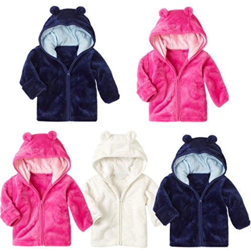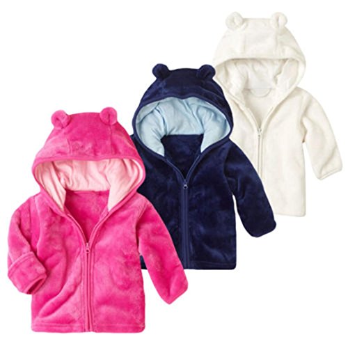 男女 熊の耳 3色 秋冬 厚手 防寒 フード付き 長袖 スウェット/コート/アウター/上着 ベビー服 女の子 赤ちゃん服 幼児 子供服 男の子 5サイズ キッズ服 ロンパース カバーオール プレゼント70CM-80CM-90CM-100CM(0ヶ月-24ヶ月)(紺色+ホットピンク+白色) (90CM/12-18ヶ月, 白色)