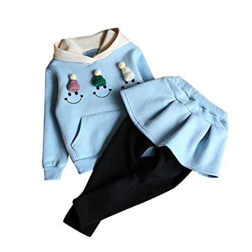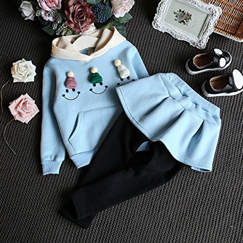 2点セット(上着+キュロットスカ—ト) 3色 かわいい 笑顔 プリント 子供服 女の子 赤ちゃん服 幼児 女の子 ベビー服 女の子 長袖 5サイズ キッズ服 コート/アウター/上着/プレゼント90CM-100CM-110CM-120CM-130CM(3歳-7歳)(青色+桜色+赤色) (130CM/7歳, 青色)