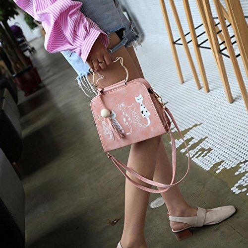 人気 両用 3色 かわいい 猫 フリンジのある 手提げバッグ レディース ポシェット レディース おもしろい 斜めがけ ポシェット 女の子 お財布 ショルダーバッグ レディース 斜めがけ 女性用 携帯電話 、眼鏡、化粧品等の小物入れ 斜めがけショルダーバッグ/クラッチバッグ /ハンドバッグ(黒色+灰色+桜色) (手提げバッグ+ショルダーバッグ, 桜色)