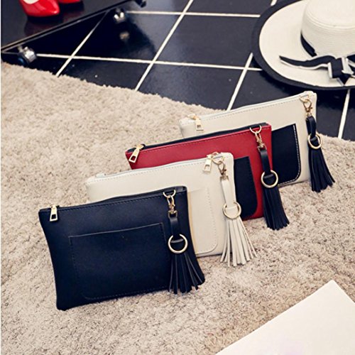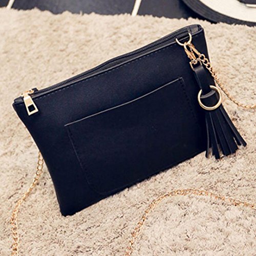 4色 おしゃれ フリンジのある ポシェット レディース おもしろい 斜めがけ ポシェット 女の子 お財布 ショルダーバッグ レディース 斜めがけ 女性用 携帯電話 、眼鏡、化粧品等の小物入れ 斜めがけ ショルダーバッグ/クラッチバッグ /手提げバッグ /ハンドバッグ (ベージュ+ブラック+レッド+ホワイト) (ポシェット, ブラック)