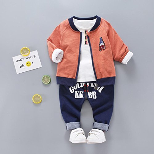 3点セット(Tシャツ+ズボン+コート)おしゃれ 4様式 タワー プリント ベビー服 男の子 赤ちゃん服 幼児 子供服 女の子 長袖 4サイズ キッズ服 ロンパース カバーオール 満月/出産祝い/プレゼント70CM-80CM-90CM-100CM(6ヶ月-24ヶ月)(緑色+灰色+橙色+桜色) (80CM/12ヶ月, 橙色)