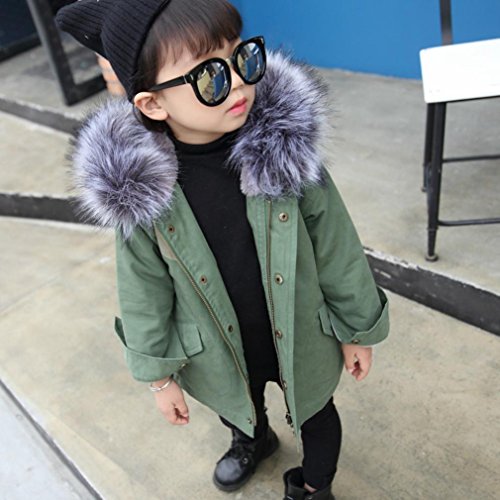 おしゃれ 秋冬 防寒 フード付き 子供服 女の子 コート/アウター/上着 ベビー服 女の子 赤ちゃん服 幼児 長袖 5サイズ キッズ服 満月/出産祝い/プレゼント90CM-100CM-110CM-120CM-130CM(24ヶ月-6歳) (100CM/3歳, 緑色)