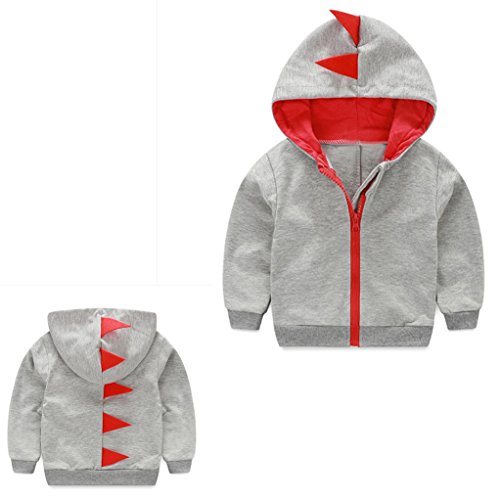 男女兼用 恐竜 フード付き コート/アウター/上着 ベビー服 男の子 赤ちゃん服 幼児 子供服 女の子 長袖 4サイズ キッズ服 満月/出産祝い/プレゼント70CM-80CM-90CM-100CM(0ヶ月-18ヶ月)(灰色) (灰色, 100CM/12-18ヶ月)