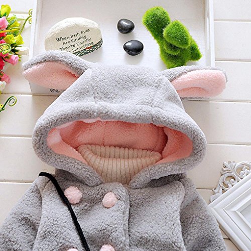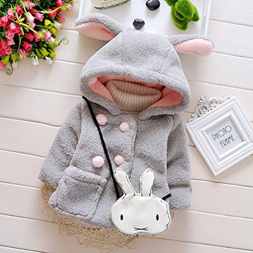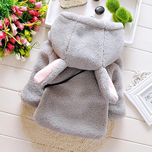 かわいい 兎 フード付き ベビー服 女の子 コート/アウター/上着 赤ちゃん服 幼児 子供服 女の子 長袖 4サイズ キッズ服 満月/出産祝い/プレゼント70-80-90-100(0ヶ月-24ヶ月)(灰色+桜色+赤色) (灰色, 90CM/12-18ヶ月)
