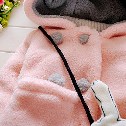 かわいい 兎 フード付き ベビー服 女の子 コート/アウター/上着 赤ちゃん服 幼児 子供服 女の子 長袖 4サイズ キッズ服 満月/出産祝い/プレゼント70-80-90-100(0ヶ月-24ヶ月)(灰色+桜色+赤色) (桜色, 80CM/6-12ヶ月)