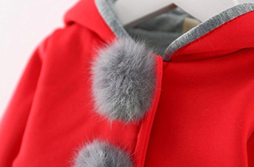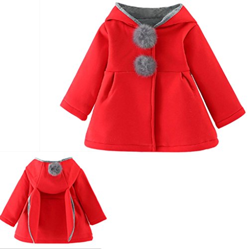 かわいい 秋冬 2色 兎 コート/アウター/上着 ベビー服 女の子 赤ちゃん服 幼児 子供服 女の子 長袖 4サイズ キッズ服 満月/出産祝い/プレゼント80CM-90CM-100CM-110CM(9ヶ月-48ヶ月)(桜色+赤色) (110CM/48ヶ月, 赤色)