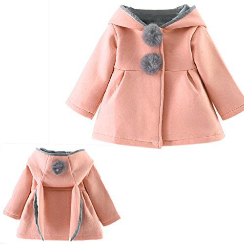 かわいい 秋冬 2色 兎 コート/アウター/上着 ベビー服 女の子 赤ちゃん服 幼児 子供服 女の子 長袖 4サイズ キッズ服 満月/出産祝い/プレゼント80CM-90CM-100CM-110CM(9ヶ月-48ヶ月)(桜色+赤色) (90CM/18ヶ月, 桜色)