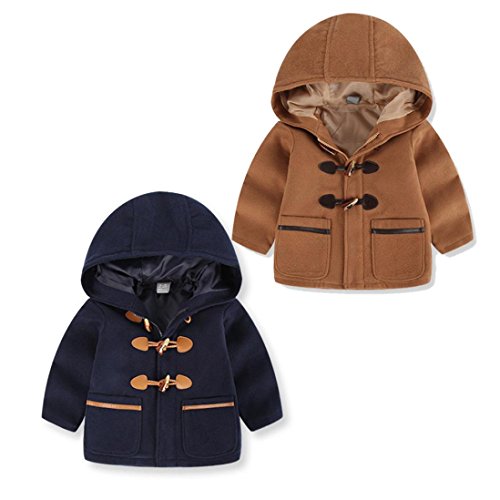 高品質 男女兼用 2色 防寒 フード付き 秋冬 コート/アウター/上着 ベビー服 女の子 赤ちゃん服 幼児 子供服 男の子 長袖 5サイズ キッズ服 満月/出産祝い/プレゼント90CM-100CM-110CM-120CM-130CM(2歳-6歳)(ブラウン+紺色) (90CM/2歳, 紺色)