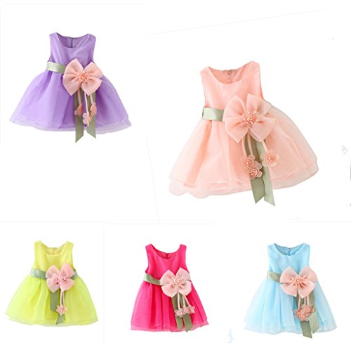 かわいい 子供 ワンピース 5色 ドレス ノースリーブ ガールズ ワンピース 女の子 夏 子どもドレス 女 おしゃれ キッズ スカート 子供服 女の子用 赤ちゃん服/ベビー服 70CM/80CM/90CM/100CM/110CM(12ヶ月-4歳) (紫+黄+青+ピンク+ホットピンク) (65CM/6ヶ月, ホットピンク)