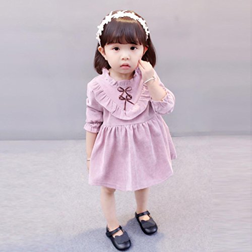 紫色 かわいい 蝶結び 子供 ワンピース 女の子 ベビー服 女の子 赤ちゃん服 幼児 子供服 女の子 長袖 4サイズ キッズ服 ロンパース カバーオール 満月/出産祝い/プレゼント80CM-90CM-100CM-110CM(6ヶ月-24ヶ月) (80CM/6ヶ月, 紫色)