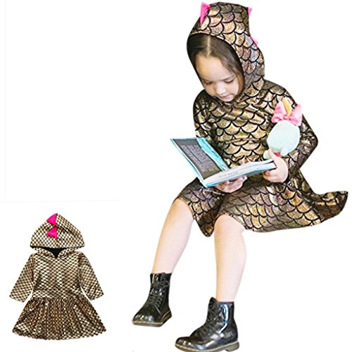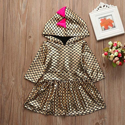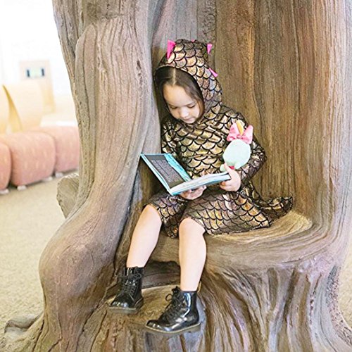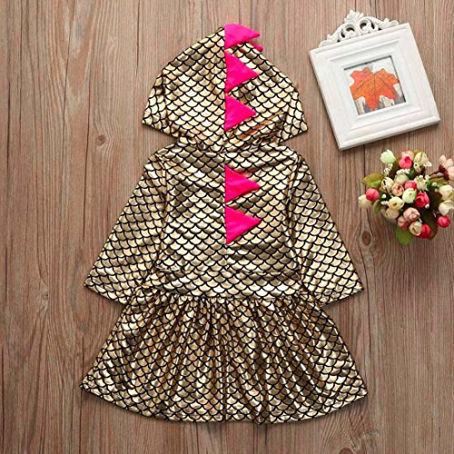 かわいい 小恐竜 フード付き ワンピース/ドレス 女の子 子供服 女の子 赤ちゃん服 幼児 子供服 女の子 長袖 5サイズ キッズ服 ベビー服 女の子 赤ちゃん服 幼児 満月/出産祝い/プレゼント 80CM-90CM-100CM-110CM-120CM(12ヶ月-4歳) (80CM/12ヶ月, 金色)