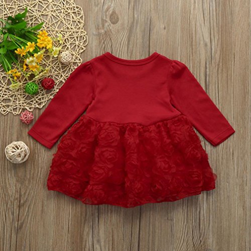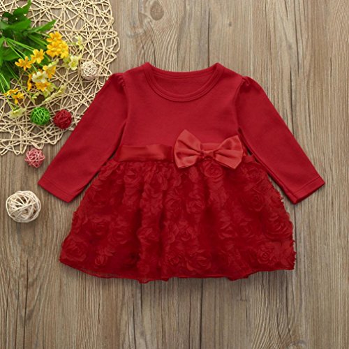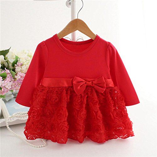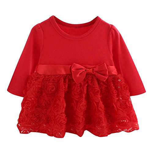 かわいい 花 蝶結び ワンピース/ドレス 女の子 ベビー服 女の子 赤ちゃん服 幼児 子供服 女の子 赤ちゃん服 幼児 子供服 女の子 長袖 6サイズ キッズ服 満月/出産祝い/プレゼント 60CM-70CM-75CM-80CM-90CM-100CM(3ヶ月-24ヶ月)(赤色) (80CM/12ヶ月, 赤色)