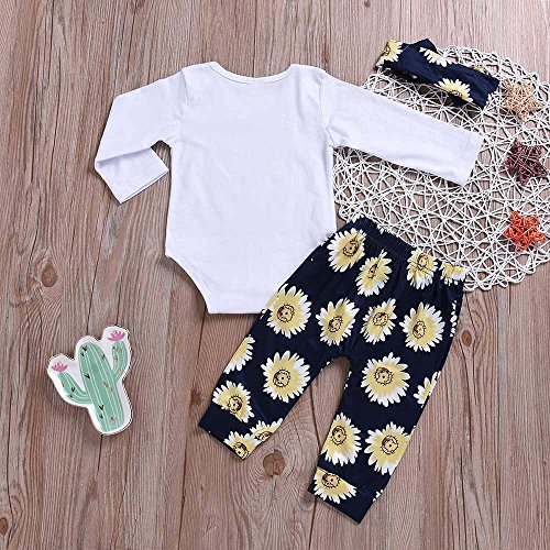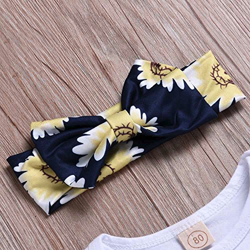 洋子ちゃん 3点セット(トップス+ パンツ+ ヘッドバンド) 花柄 プリント ベビー服 女の子 赤ちゃん服 幼児 子供服 丸首 長袖 4サイズ キッズ服 ロンパース 満月/出産祝い/プレゼント70CM-80CM-90CM-100CM(12ヶ月-24ヶ月) (【100CM / 24ヶ月】, 白色)