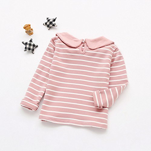 洋子ちゃん 長袖 子供 服 女の子 長袖 ストライプ プリント 可愛い 秋 Tシャツ トップ キッズ服 おもしろ 満月/出産祝い/プレゼント 通園 おでかけ 80CM-90CM-100CM-110CM-120CM(12ヶ月-4歳) (【90CM/18ヶ月】, ピンク)