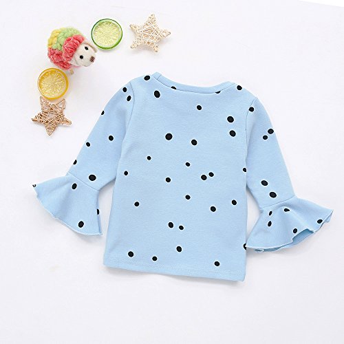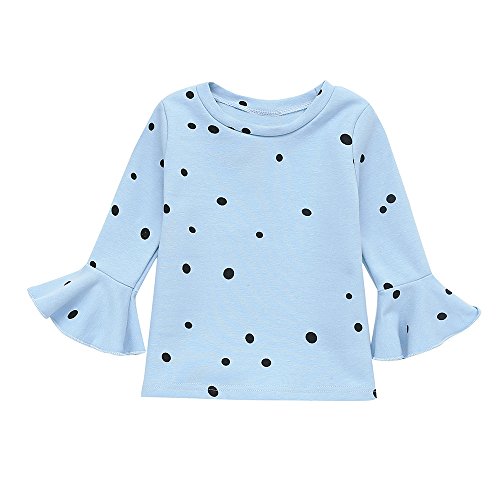 洋子ちゃん 長袖 子供 服 女の子 長袖 ポイント プリント フリル袖 プリント 可愛い 秋 Tシャツ トップ キッズ服 おもしろ 満月/出産祝い/プレゼント 通園 おでかけ 80CM-90CM-100CM-110CM-120CM(12ヶ月-4歳) (【120CM/4歳】, 青色)